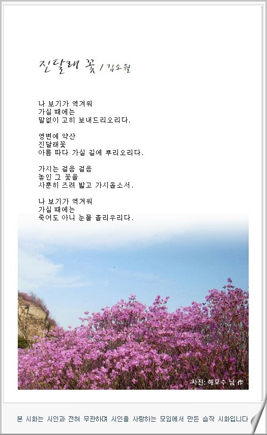 [진달래꽃 - 작시 김소월 / 작곡 김동진 / 노래 Sop. 백남옥] '듣기 편안한 시음악 감상' 카테고리의 다른 글